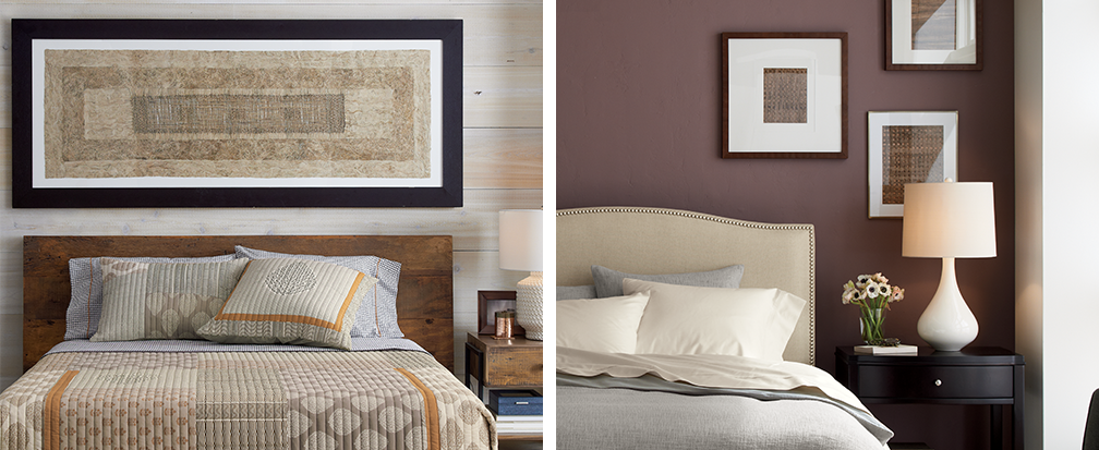Hang one piece centered above the bed for a traditional feel or get how about something less expected to shake things up?